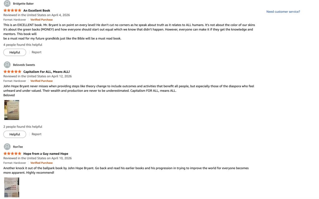 “Another knock it out of the ballpark book by John Hope Bryant. Go back and read his earlier books and his progression in trying to improve the world for everyone becomes more apparent. Highly recommend!”