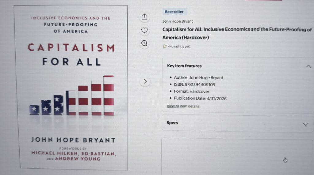 Capitalism for All by John Hope Bryant now carries the “Best Seller” badge on one of the largest retail platforms in the world. This follows its debut at #9 on the Publishers Weekly Hardcover Nonfiction list, #1 across multiple Amazon categories, placement on the USA TODAY Bestseller lists, and selection as an Amazon Editor’s Pick.