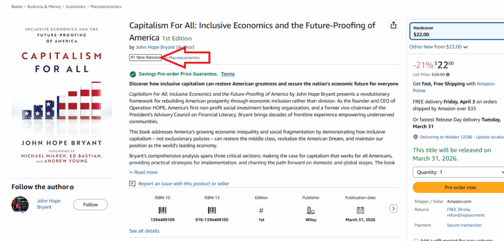 Earlier this week my publisher Wiley announced the coming release of my newest book ‘Capitalism for All: Inclusive Economics and the Future Proofing of America,’ which is scheduled for a publish date of March 31, 2026.