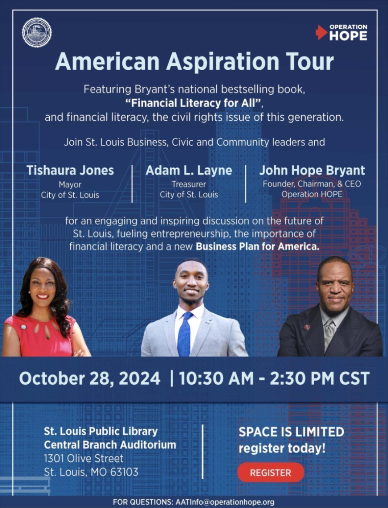 We’ve been all over the country discussing financial literacy with some of the nation’s finest mayors who are committed to advancing the cause of financial empowerment in their cities. The next step on the tour is St. Louis, Missouri, where I’ll be joined by Mayor Tishaura Jones and Adam L. Layne, Treasurer for the City of St. Louis. Click here to register.
