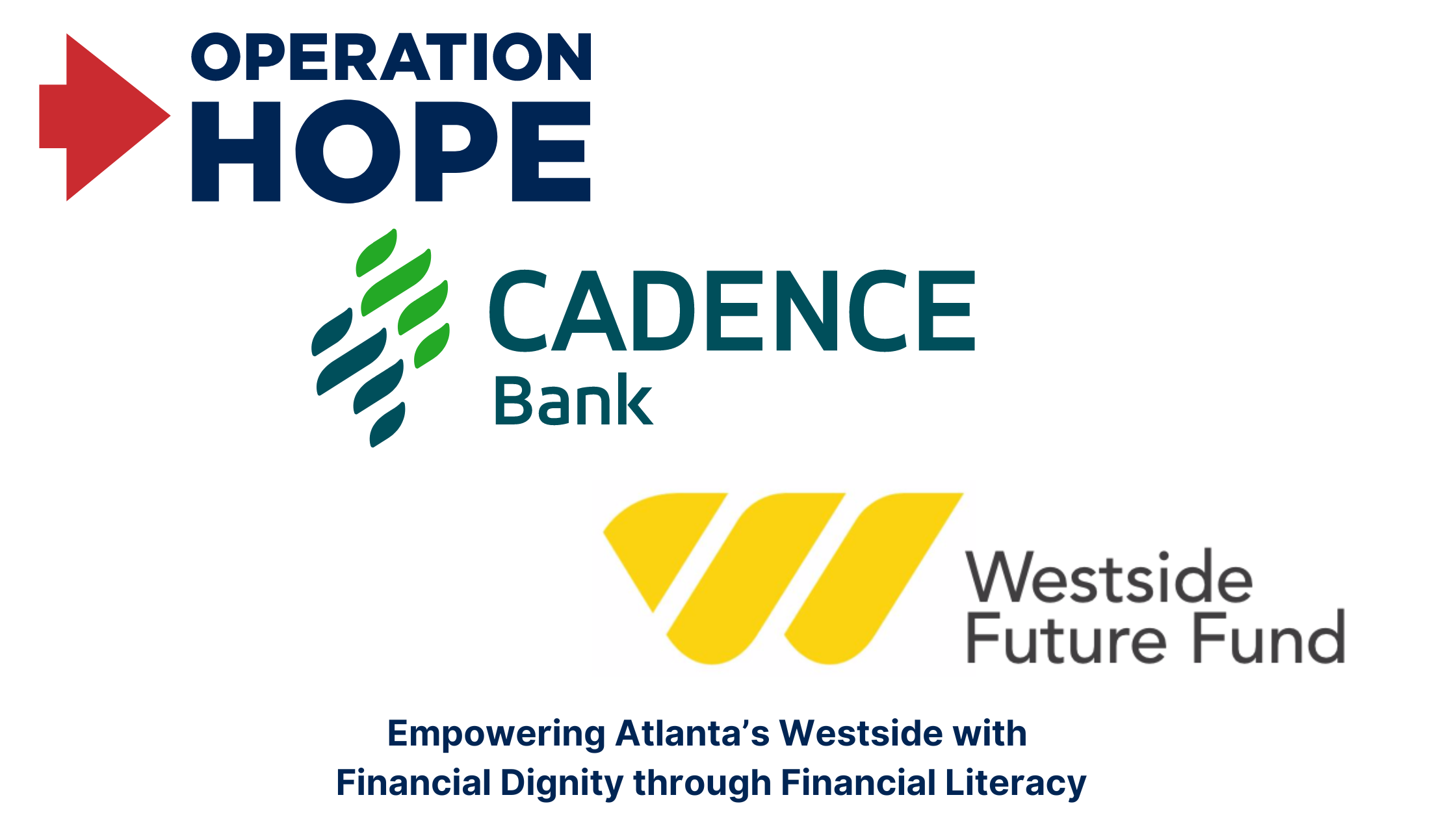 ATLANTA, Aug. 30, 2023 /PRNewswire/ — Operation HOPE, Westside Future Fund (WFF), and Cadence Bank are excited to announce they have united efforts to enhance essential financial literacy and homeownership support services to the historic Westside communities of Atlanta. This partnership, aimed at transforming lives and increasing access to resources, underscores the pressing need for growth and financial literacy in these historically significant neighborhoods at no cost to program participants.