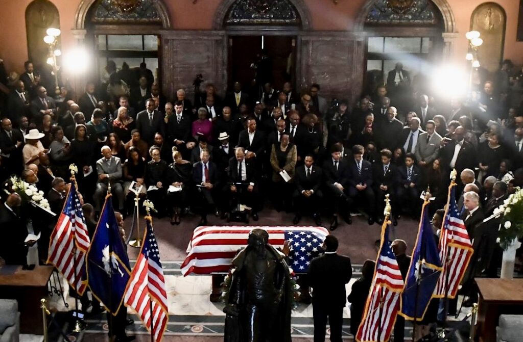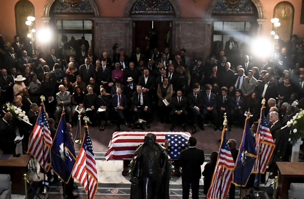 Inside the South Carolina State House, beneath the dome where so many chapters of America’s unfinished story have unfolded, Reverend Jackson lay draped in the American flag — a son of South Carolina who challenged America to live up to its promise.